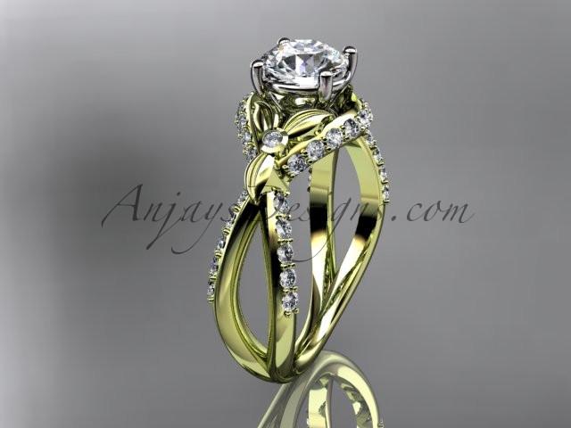 Unique 14kt yellow gold diamond flower, leaf and vine wedding ring, engagement ring ADLR218