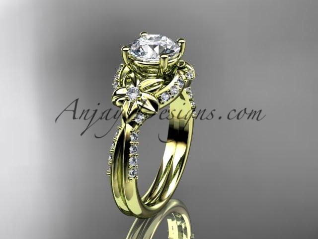 Unique 14kt yellow gold diamond flower, leaf and vine wedding ring, engagement ring ADLR220