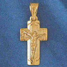 SOLID 14K GOLD RELIGIOUS CHARM - CRUCIFIX #7360