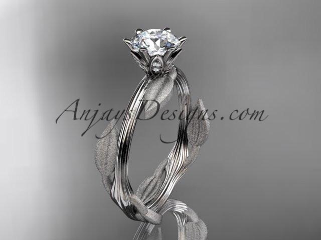 Unique 14k white gold leaf and vine engagement ring, wedding ring with a "Forever One" Moissanite center stone ADLR343